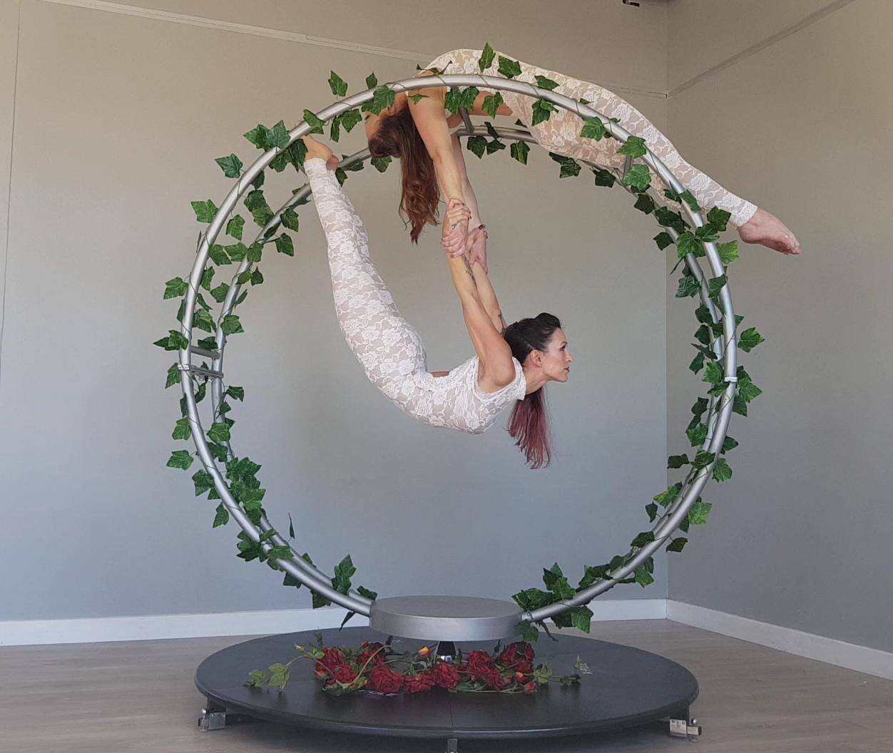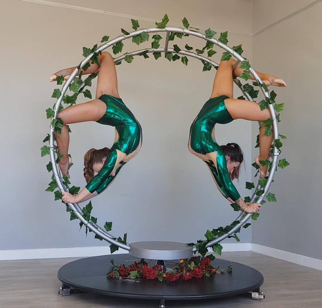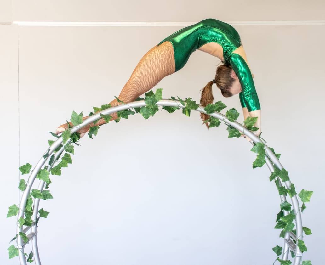 This specialty act highlights the gymnast’s precise control and fluid movements as the sphere rotates, creating a mesmerizing display of balance, agility, and artistic expression.