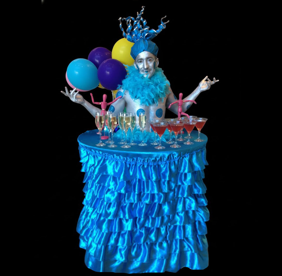 Hiring Human Tables combines living performers with functional tables for serving canapés, drinks, or desserts.