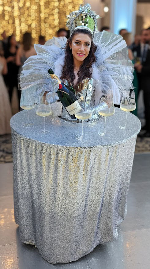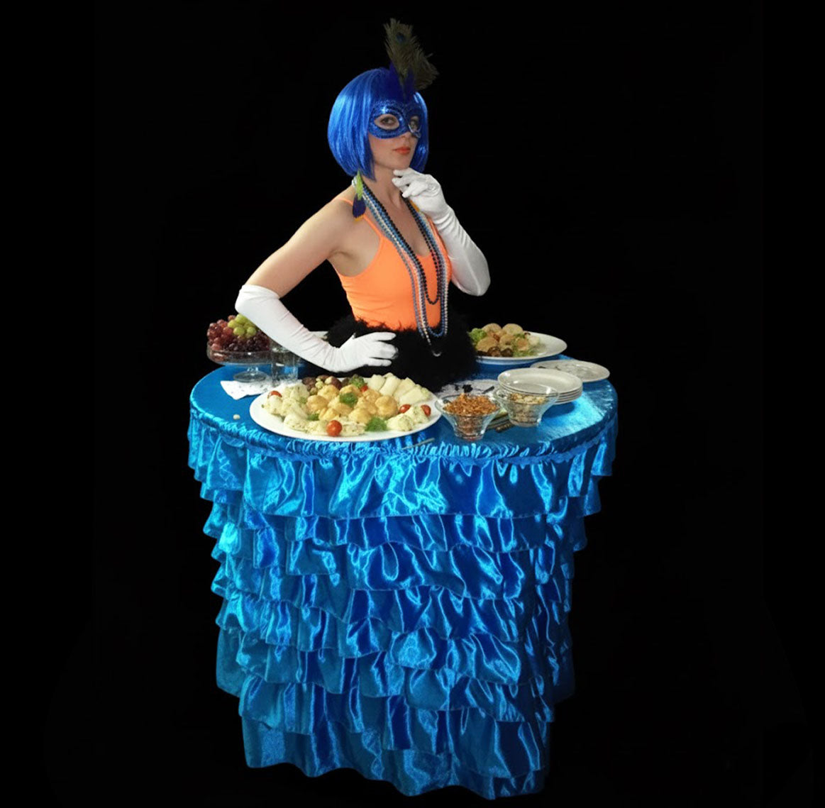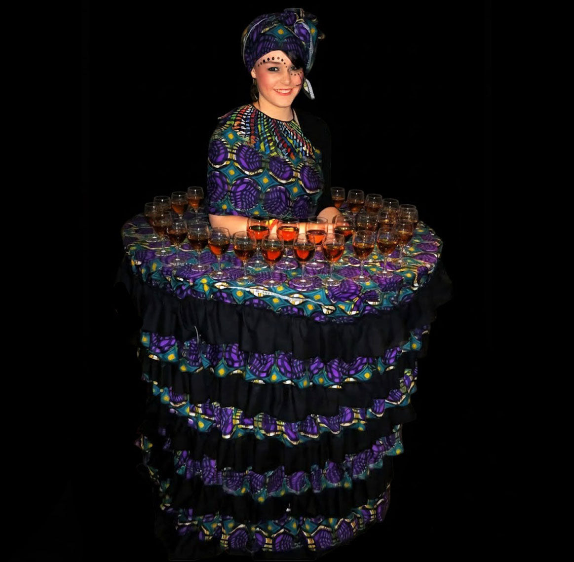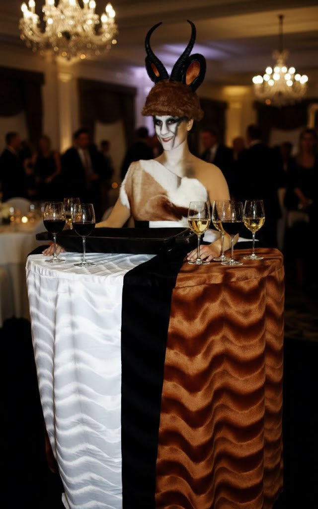 When booking Human Tables, coordinate the costumes and decor with your event theme.