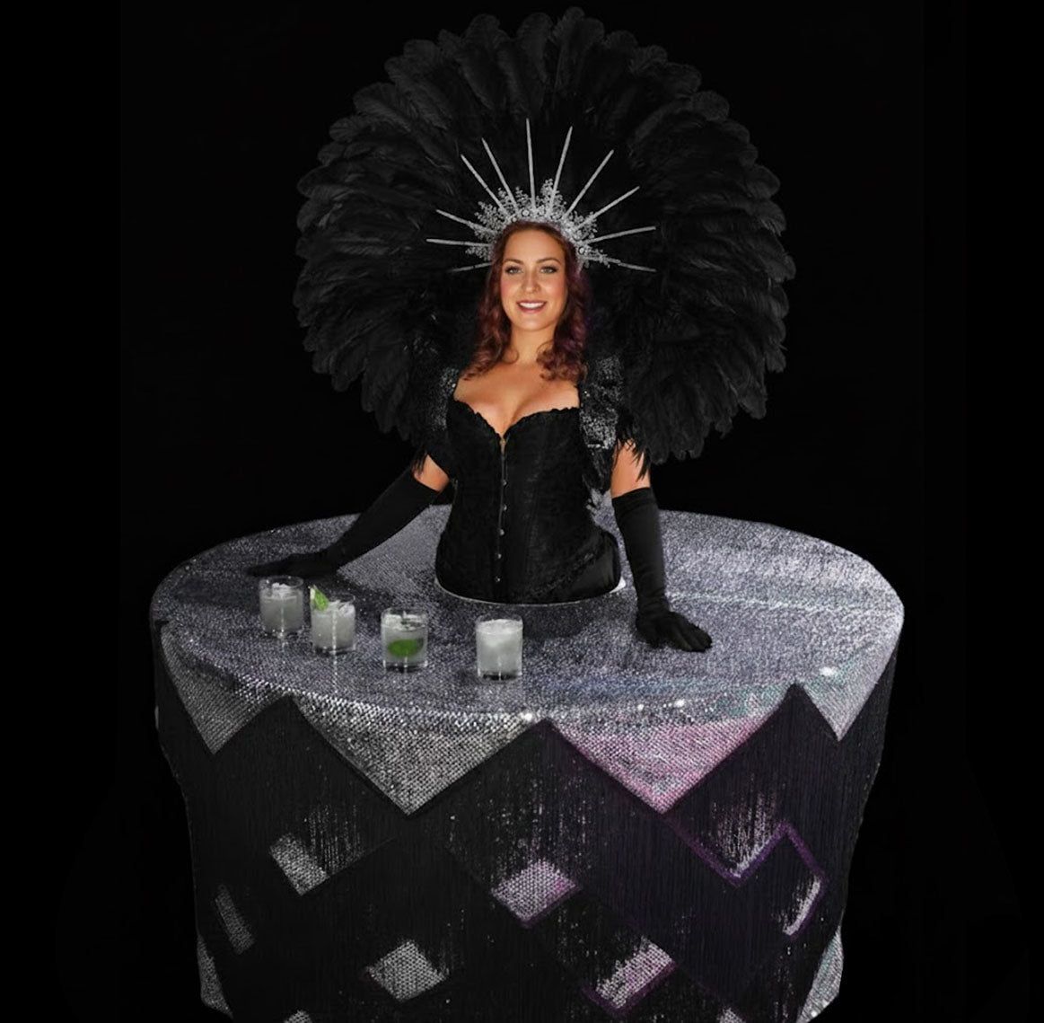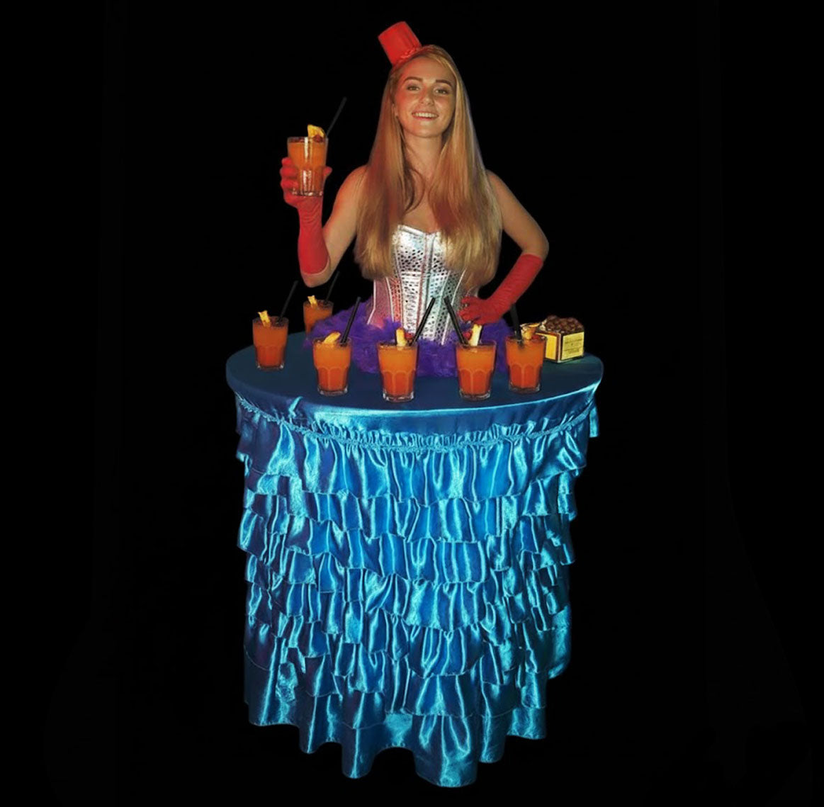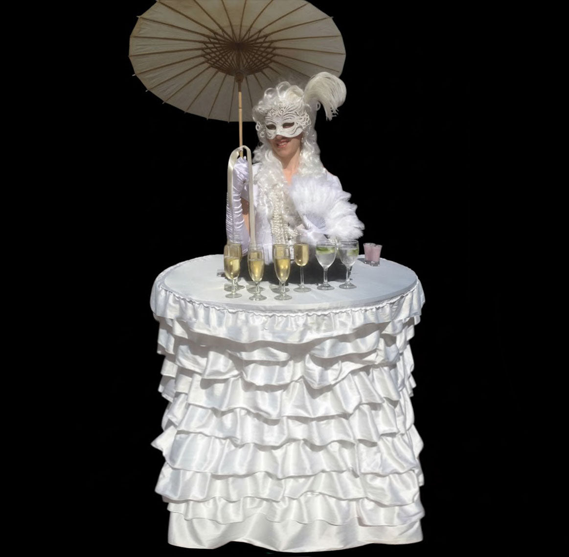 When booking Human Tables, coordinate the costumes and decor with your event theme.